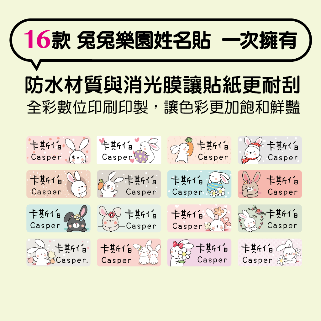 兔兔姓名貼 防水姓名貼紙 客製貼紙 幼兒園貼紙