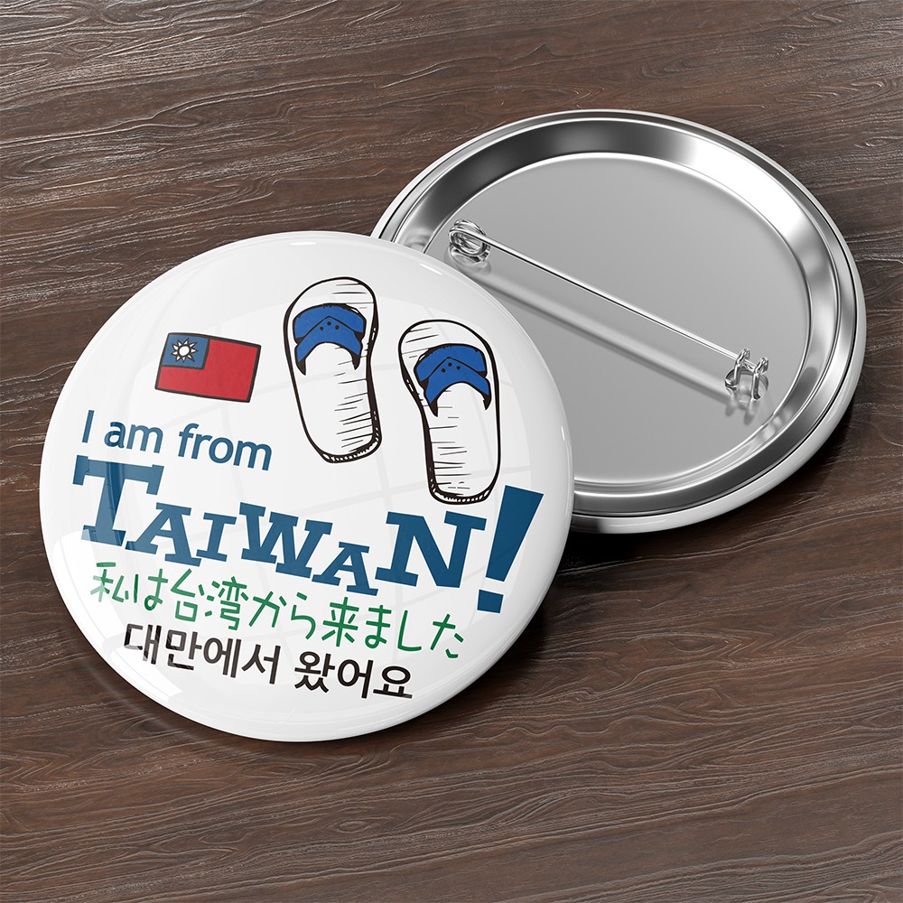 我是台灣人 胸章 及 旅行箱識別貼紙 是 出 國 旅 行 熱 門 小 物 ! 我 是 台 灣 人 徽 章 , 每 組 各 一 個 胸 章 及 防 水 識 別 貼 紙 , 亮 面 設 計 , 防 水 易 清 潔 , 採 用 安 全 鎖 別 針 , 不 易 鬆 脫 ,出國別在衣服、包包上,自信地告訴外國人,我來自台灣!。